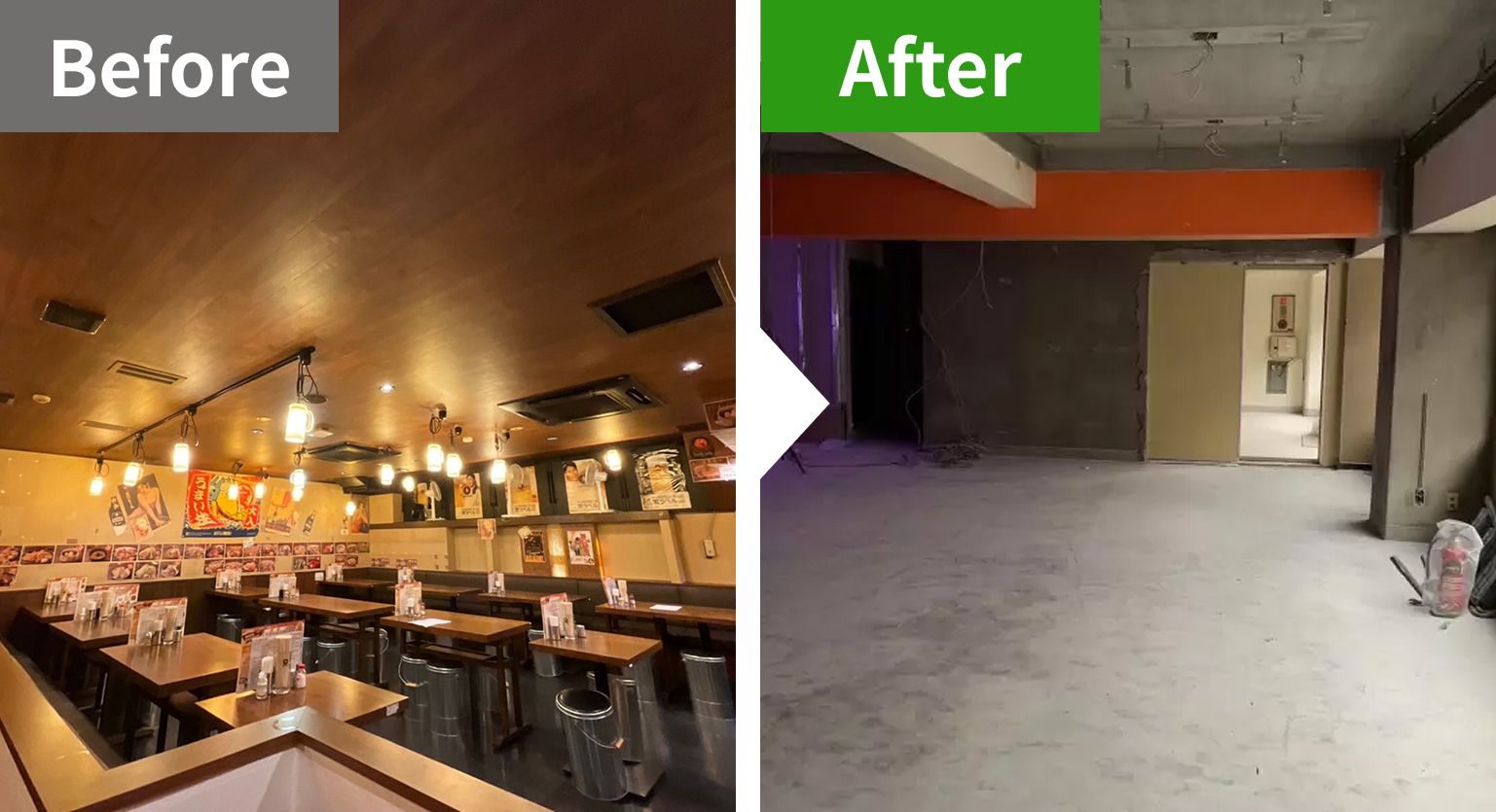 居酒屋に入る次のテナントも決まっており工期遅延が許されない状況でしたが無事遅延なく完了しました。