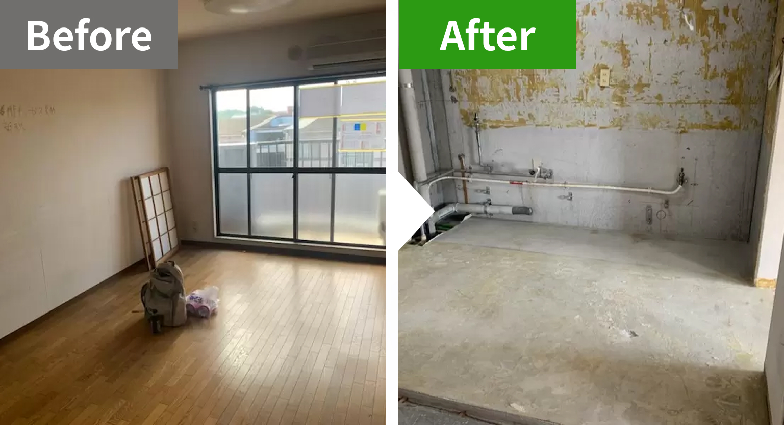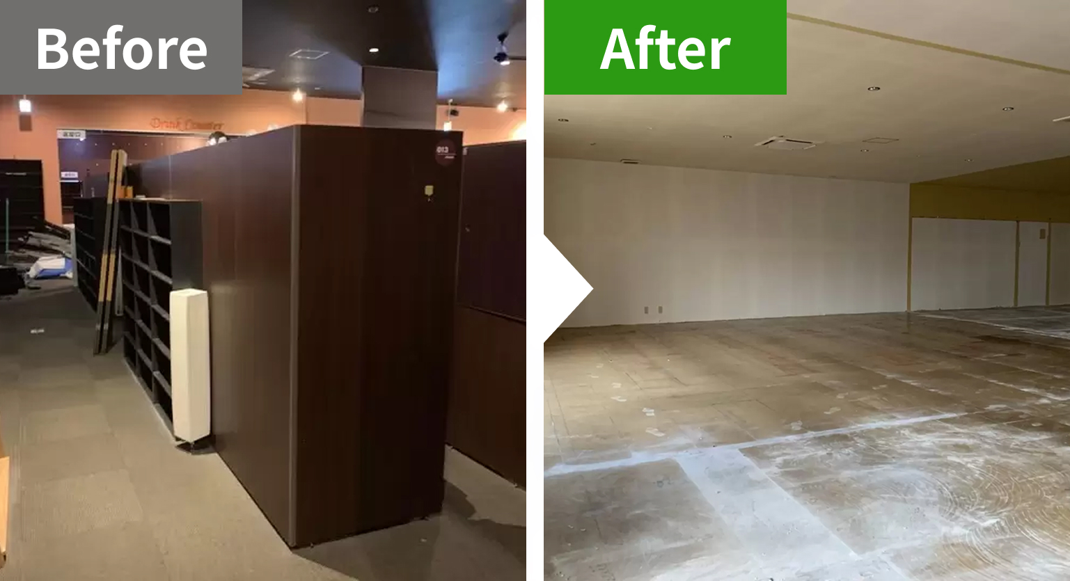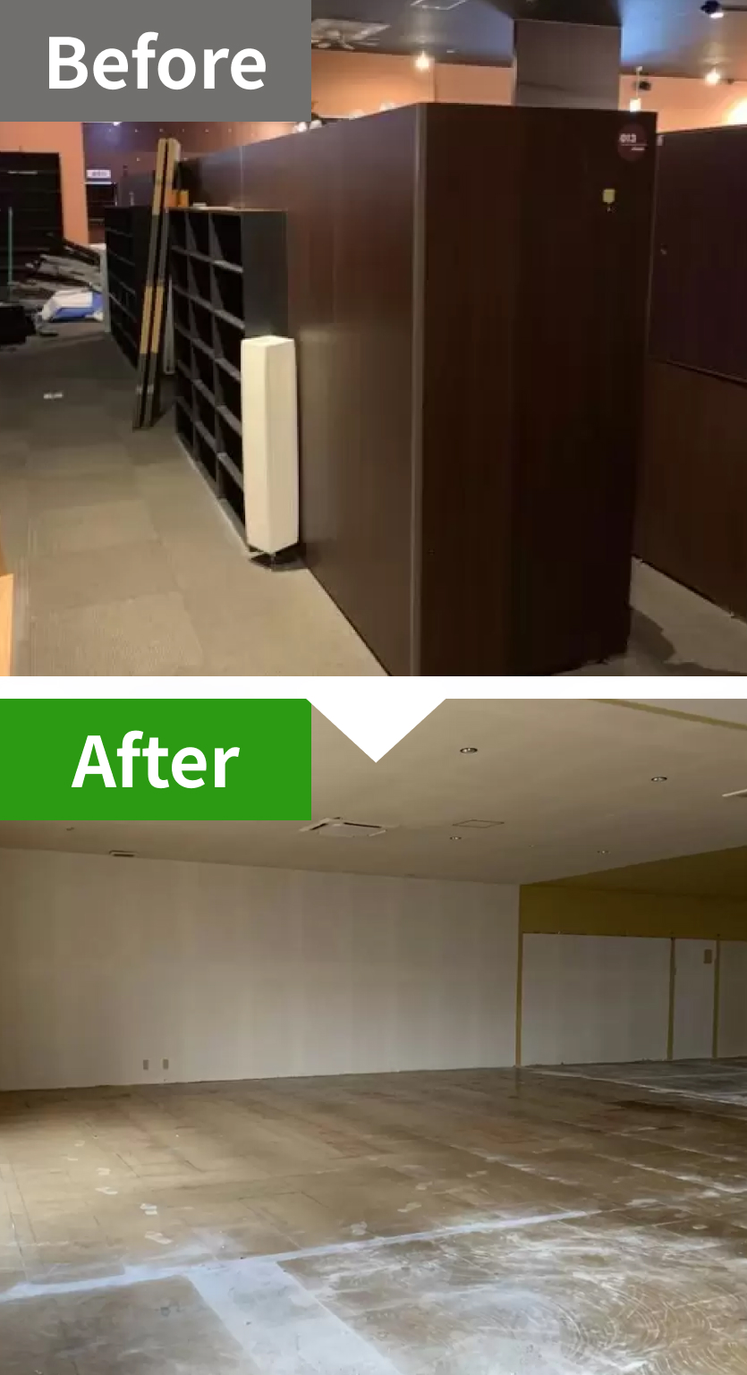 37坪の広さの内装解体工事を行いました。不動産オーナー様よりご依頼頂き一般宅の対応も可能です。