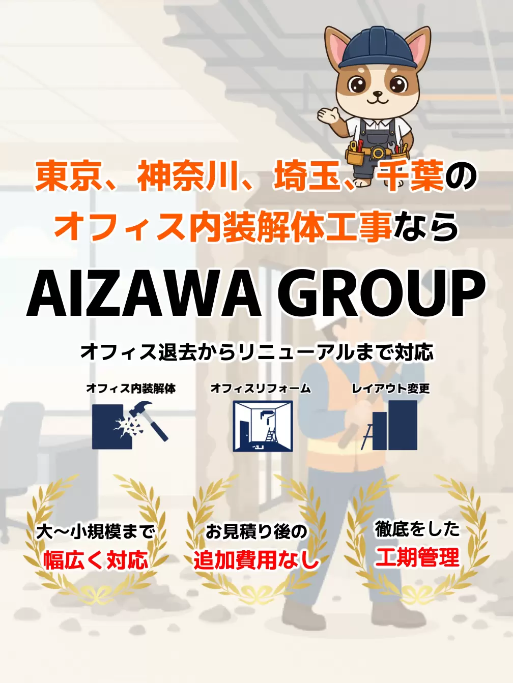 オフィスや店舗の内装解体工事に長年携わってきた実績があり、スピーディーかつ丁寧な施工でご信頼をいただいています。